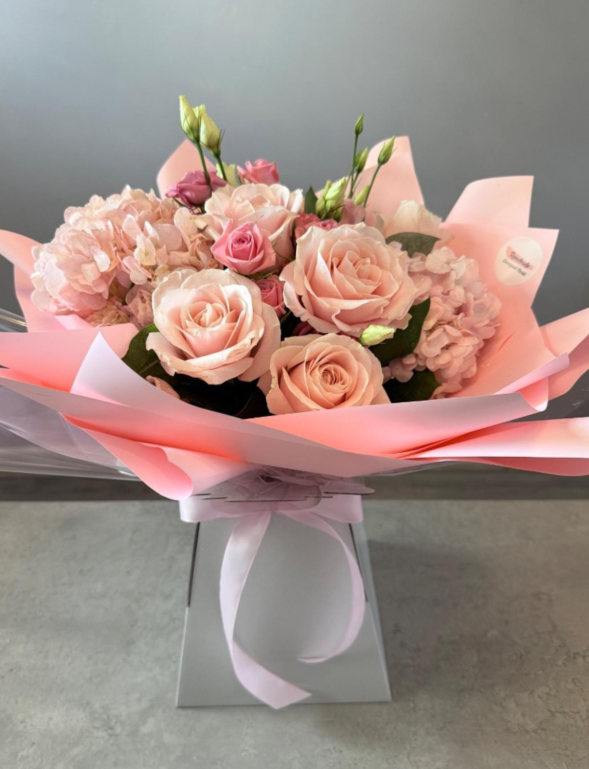 Our bouquets are made up with a mixture of fresh seasonal flowers, they come handtied in a bubble of water, these can be kept in the box and topped up with water or can be transferred to a vase.