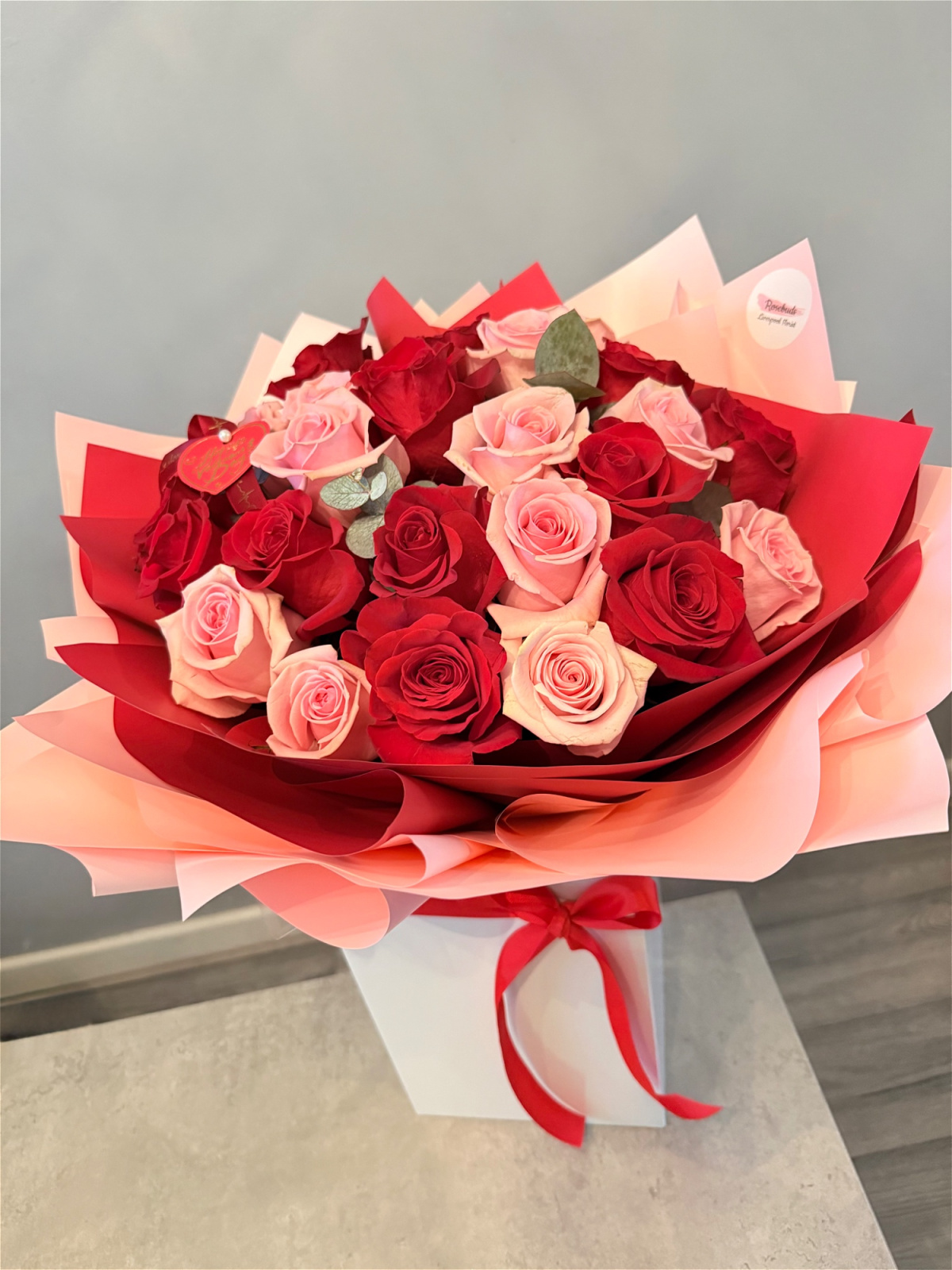 Our bouquets come handtied in a bubble of water, these can be kept in the box and topped up with water or can be transferred to a vase.